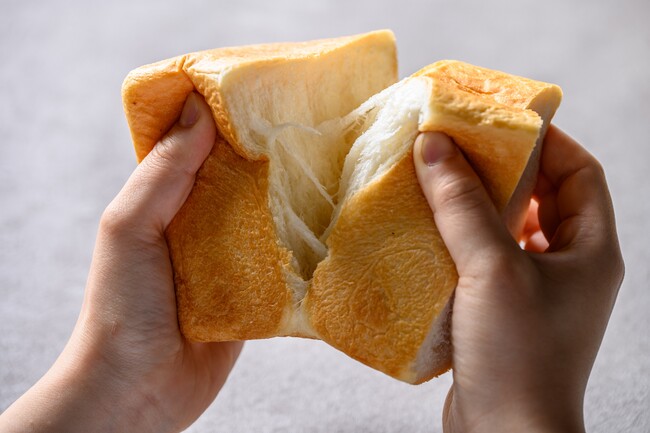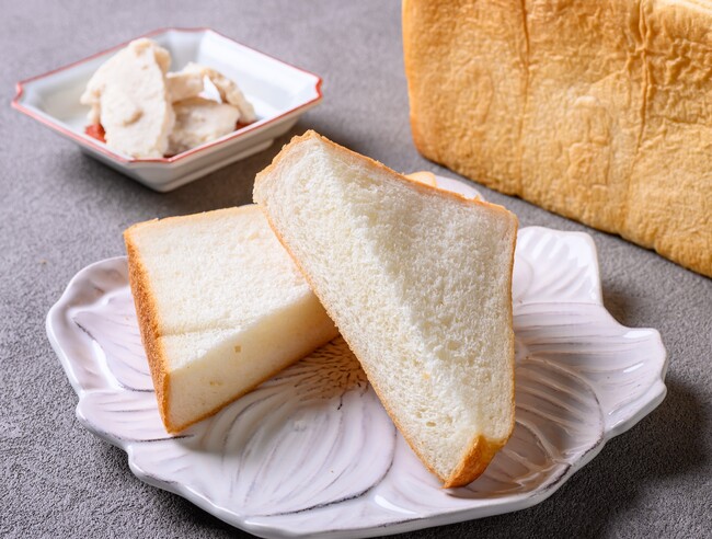 純米吟醸酒は、お米と米麹、水だけで作られているため、お米本来の味わいや旨味が感じられます。その純米吟醸酒から生まれた酒粕を生地に練り込むことで、酒粕がもつ独特の甘みとコクを引き出した食パンに仕上がります。そのままお召し上がりいただくと、もっちりとした食感と酒粕の甘みとコクを感じていただけ、ふたつに割ったときのほのかに香る酒粕の風味と味わい、また軽く焼いたときの表面がカリッとなる食感を楽しめます。