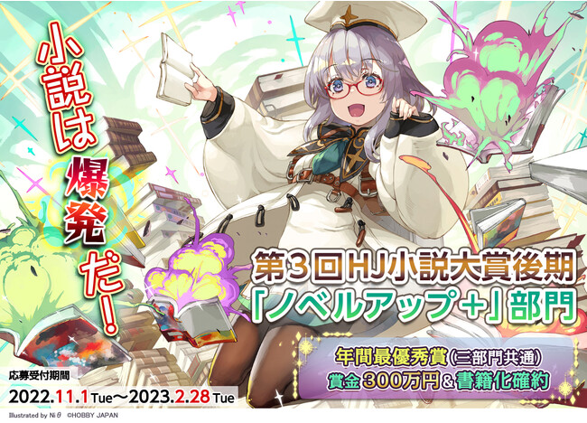 株式会社ホビージャパン(本社:東京都渋谷区、代表取締役社長:松下大介)は、11月1日(火)より、WEB小説投稿サイト「ノベルアップ+」において、同社のレーベルであるHJ文庫・HJノベルス両編集部が選考を行う「第3回HJ小説大賞後期」の作品応募受付を開始しました。
