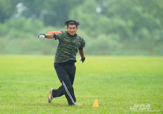 各5人ずつの2チームが14m(女子は13m)間隔の平行線上に向かい合い、オフェンスチームの選手1人が、ライン上に並んでいるディフェンスチームのスコアリングゾーン(5人が手を広げた幅とそれぞれの手を伸ばした高さで作られる面)にディスクを投げ、キャッチ成功・失敗によって得点を獲得するゲームです。スローワーは、ファールラインの手前から地面に接することなくディスクを投げなければなりません。