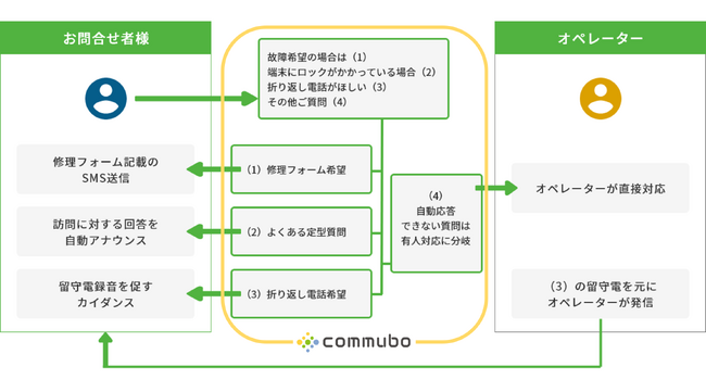commuboは「継続的で」「複雑な」「音声の会話」に対応する会話AIロボット(ボイスボット)です。