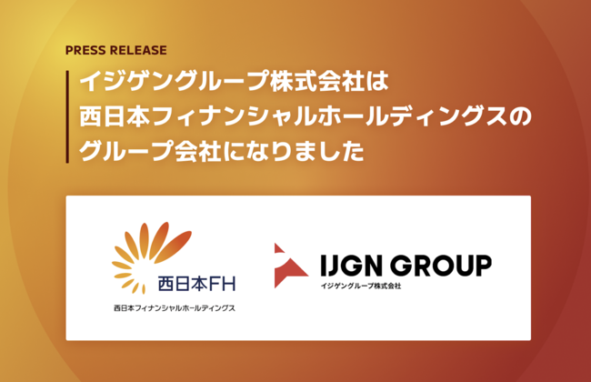 イジゲングループ株式会社(本社:大分県大分市、代表取締役CEO:鶴岡 英明、代表取締役専務CFO:鍋島 佑輔、以下「イジゲングループ」)は、株式会社西日本フィナンシャルホールディングス(本社:福岡県福岡市、取締役社長:村上 英之、以下「西日本FH」)へ株式譲渡を行い、グループ会社となりましたことをお知らせいたします。