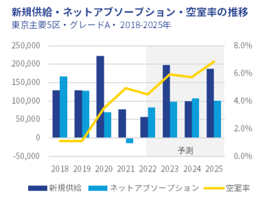 空室率と賃料トレンド: 2023 年にはさらに供給が増加、空室と賃料は軟調な推移が予想される