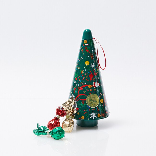 グリーンベースのギフトボックスにクリスマスモチーフをちりばめたデザインのクリスマスハンパー。PICK&MIXで人気のチョコレート14種類62個がアソートされた充実の内容で、ヴェンキのチョコレートの世界を堪能いただけます。