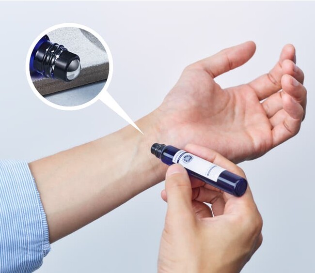 ロール面を手首や首筋、耳の後ろ等に直接あて、ロールを転がし適量を塗布します。