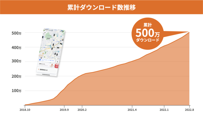 日本のタクシー利用におけるアプリの浸透は、年々加速しており、こうしたアプリ浸透の中で、「DiDi」はお客様に「平均5分*1でタクシーが来る」等の利便性や使いやすさという価値を感じていただき、着実にダウンロード数を伸ばすことができています。