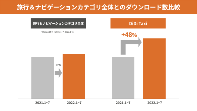 2022年1月~7月の合計ダウンロード数は、前年同期比+48%となり、同じ「旅行&ナビゲーションカテゴリ全体」のアプリと比較しても大きくダウンロード数が伸長する結果となりました。