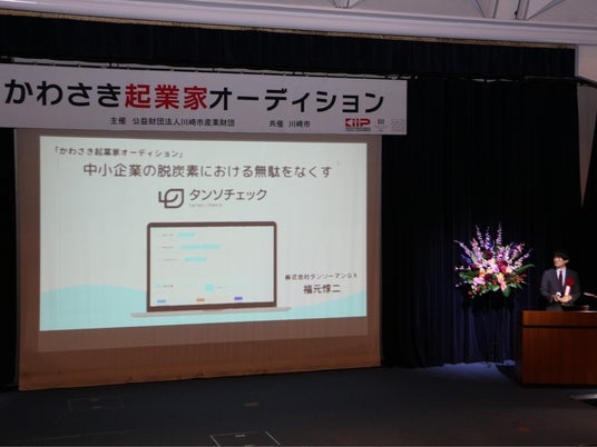 広く内外から様々な分野のビジネスの「種」(シーズ)を募り、川崎市の融資制度の利用やベンチャーキャピタル等との出会いの場を提供することによって、ビジネス・アイデアの実現をサポートする標記事業の第139回の最終選考会が、令和6年7月19日(金)に開催され、かわさき起業家賞に株式会社タンソーマンGXの代表取締役である福元惇二が登壇し、「かわさき起業家賞」を受賞しました。