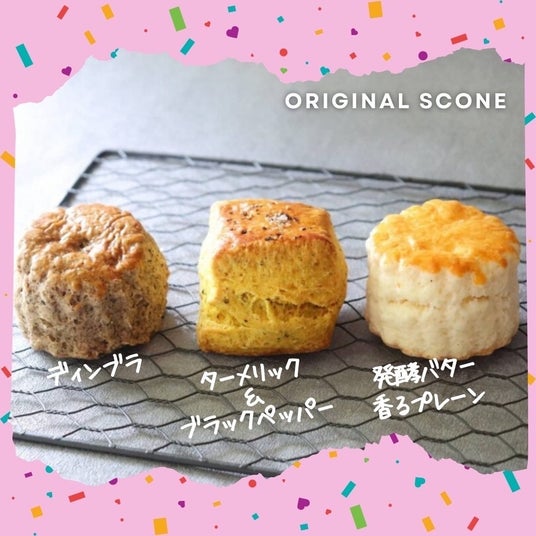 ◆ディンブラスコーン……濃厚な風味と軽やかな渋みをもつディンブラの茶葉を使ったスコーン。バラのような香りのディンブラ茶葉を存分に感じられる特別なスコーンです。