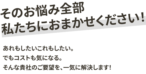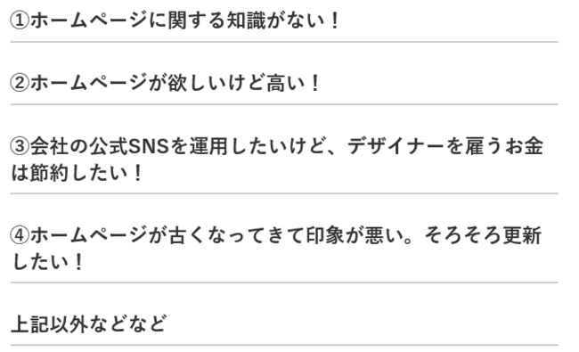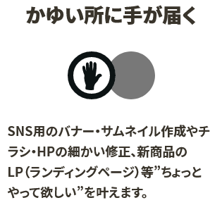 他にも、Webサイト構築・リニューアルやスマホ対応(レスポンシブ化)・SEO対策・WEBやSNS用バナー作成からチラシ作成まで、あらゆるWebサイトに求められる様々なご要望に「安心・低価格・総合力」にてお応えします。