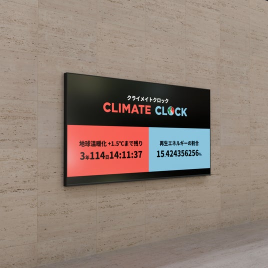 現在は、気候危機による壊滅的な地球の未来を回避するため、【クライメイトクロック 】カウントダウンタイマー デジタルサイネージ用コンテンツをお申込みいただいた皆様全員に無償提供をしています。