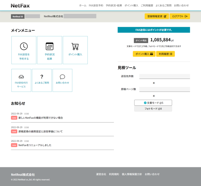 ポイント購入制度を導入しており、事前に購入いただいたポイントから、送信枚数分を消化することでFAX送信予約ができます。不着分のポイントは返却されます。