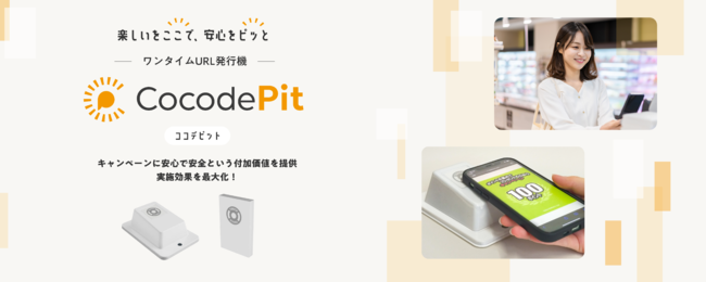 「CocodePit」は NFC(近距離無線通信規格)技術を使ったサービスで、機器にスマートフォンをかざすことでワンタイムユニーク URL を発行できます。狙いとするターゲットへ情報・インセンティブを届けたい!という WEB キャンペーン市場のニーズに応える新しい機器サービスです。