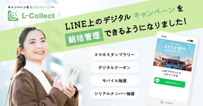 「L-Collect」は、LINEを通して非接触スマホスタンプラリーやデジタルクーポン、モバイル抽選などの多様なキャンペーンを実施できるサービスです。