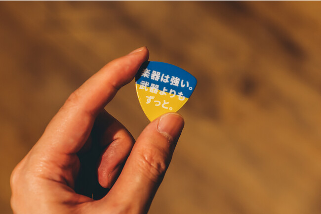 「IKEBE MUSIC オリジナルチャリティピック」は3月よりスタートしたウクライナチャリティグッズとして限定販売され、多くのお客様にこの活動を知っていただくきっかけとなりました。ウクライナの国旗をモチーフにしたこのピックを今回のチャリティアクションのシンボルとして採用したのは、弦楽器を演奏する為の道具としてだけでなく、平和について考えるきっかけのひとつになれば…との思いからです。