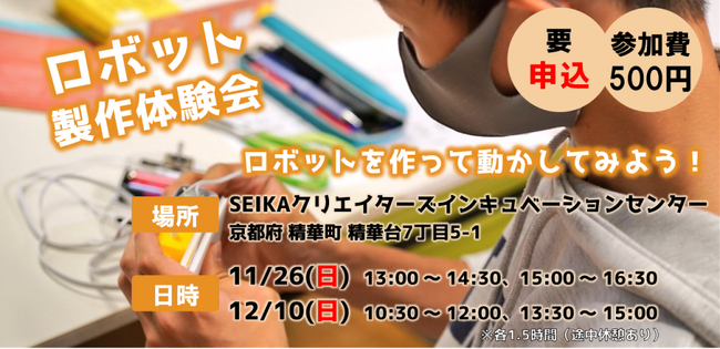 次世代ロボットエンジニア支援機構(通称:Scramble)は、2023年11月26日(日)および12月10日(日)に小学生向け「ロボット製作体験会」をSEIKAクリエイターズインキュベーションセンター(京都府精華町)で開催します。