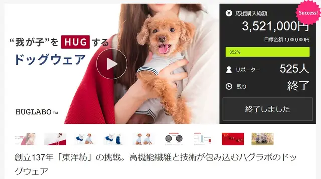 生活雑貨・キッズファミリー用品を展開する繊維商社の原貿易株式会社(本社:横浜市神奈川区、代表取締役社長:江守雅人)は、東洋紡株式会社および丸和ニット株式会社と共同で、「HUGLABO(R)」ブランドのドッグウェア商品のクラウドファンディングを、2月13日までクラウドファンディングサービス「Makuake」で実施しています。