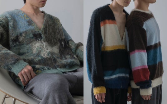 <YOKE>YOKEは、KEITAMARUYAMA 2000SSコレクションに使用されたジャガード生地の"Fairy Tale"柄を、YOKEの定番であるキッドモヘアジャガードのカーディガンで再現しました。