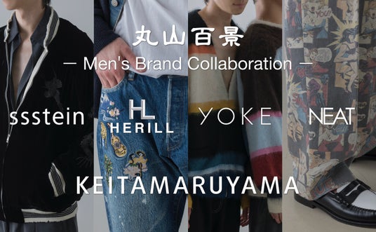 2024年、「KEITAMARUYAMA」(ケイタマルヤマ)は創業30周年を迎え、この記念すべき年に、東京を代表するメンズファッションブランド「HERILL(ヘリル)」「NEAT(ニート)」「ssstein(シュタイン)」「YOKE(ヨーク)」の4ブランドとのコラボレーションアイテムをローンチします。本コラボレーションでは、丸山敬太の下でスキルを磨いたHERILLのデザイナー、大島裕幸氏を中心に各ブランドの個性を活かしながら、KEITAMARUYAMAの魅力を融合させた特別なアイテムが制作されました。