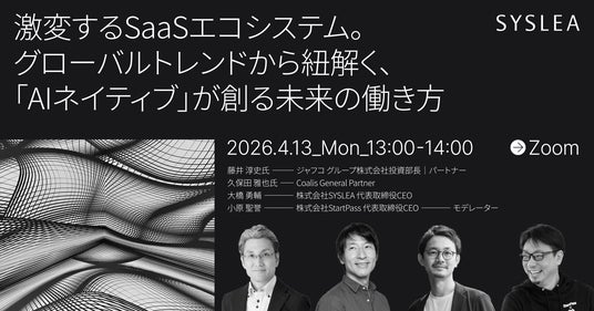 「SaaSの死」が囁かれる今、これからの企業経営とソフトウェア選びの基準はどう変わるのか。本ウェビナーでは、米国のスタートアップ動向に詳しい有識者と国内トップVCをゲストにお迎えし、激変するグローバルトレンドを紐解きます。