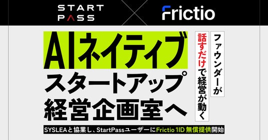 株式会社StartPass(本社:東京都新宿区/代表取締役CEO:小原聖誉)は、ファウンダーの意思決定支援を目的とした新プロジェクト「AIネイティブスタートアップ経営企画室」を正式に始動しました。プロジェクト第一弾として、AIネイティブCRM『Frictio』を提供する株式会社SYSLEA(本社:東京都品川区、代表取締役CEO:大橋勇輔、以下SYSLEA)と業務提携を開始します。ファウンダーの会話を構造化し、経営課題を自動抽出する次世代の経営OS構想を発表し、StartPassユーザー限定で「Frictio」の1ID無償提供プログラムを開始いたします。