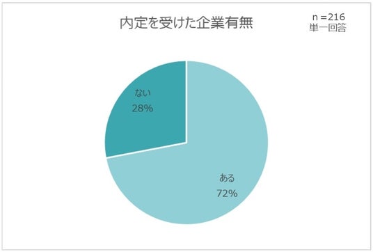 現時点での内定保有率は72%と、3月1日の就職活動本格解禁を感じる結果となりました。しかし、あくまでも1社以上の内定がある学生の割合のため、引き続き第一志望の企業の就職活動に向けて引き続き就職活動を行う学生も一定層存在します。近年の就職活動は、学生の売り手市場であるという状況が垣間みえます。