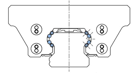 8条列の転動溝と小径ボールの採用により、LMブロック内の有効ボール数を増やしたことで、直動案内の中でもトップレベルのナノメートル単位の超低ウェービングを実現。