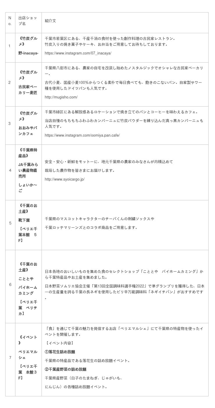 ・開催場所:ペリエ千葉本館3F ペリエマルシェ
