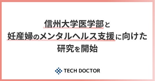 株式会社テックドクター(代表取締役:湊 和修、本社:東京都中央区、以下、テックドクター)は、国立大学法人信州大学医学部「周産期のこころの医学講座」が実施する研究に、データ解析および研究支援担当として参画します。