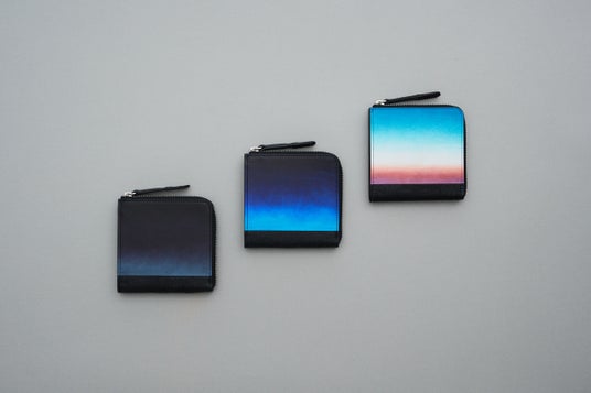 職人の手によって、姫路レザー(ステア)を一枚一枚丁寧に「変わりゆく空の色」をイメージしたグラデーションに染め上げました。