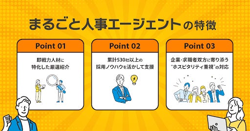 今回新たに開始する「まるごと人事エージェント」は、特にセールス職・コーポレート職(人事・財務経理)に強みを持ち、企業と求職者の「長期的な相性」を重視した、高精度なマッチングを特徴としています。