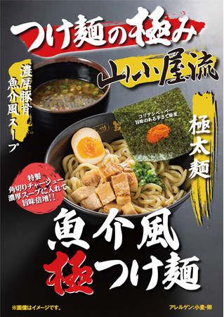自社製造の特製『極太麺』を使用し、当グループオリジナルのつけ麺が完成しました。