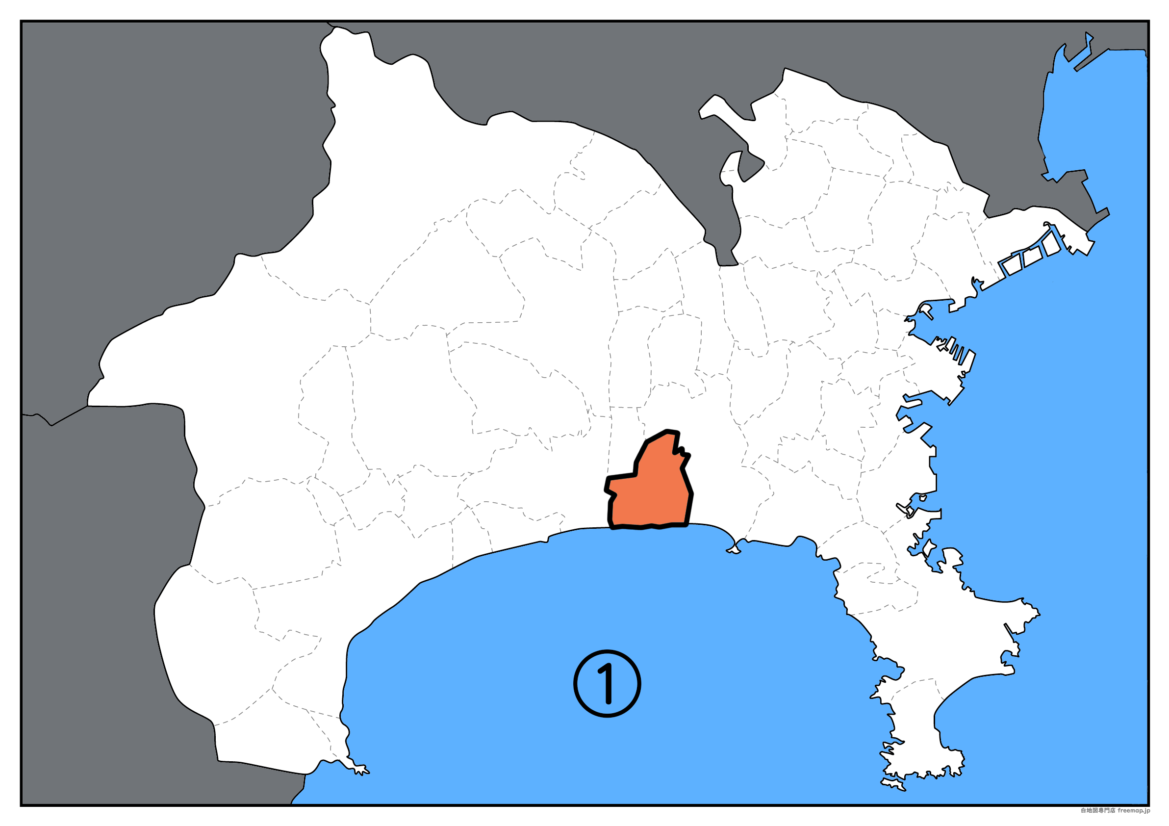 湯河原町、真鶴町、小田原市、二宮町、大磯町、平塚市、茅ヶ崎市、藤沢市、鎌倉市、逗子市、葉山町、横須賀市、三浦市