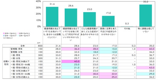 Q.女性特有の健康問題に関して、どのような課題を感じていますか。同じ職場の女性に対して感じている課題にあてはまるものをすべて教えてください