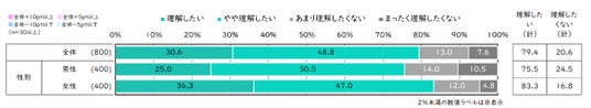 女性特有の健康問題に関する自身の理解度、「理解している」は約6割(61.9%)、男女別では、女性約7割(69.0%)に対し、男性約5割(54.8%)という結果に