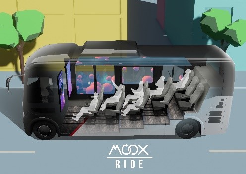 透明ディスプレイを使用した、車窓映像に重ねるAR表現や、臨場感のある立体音響、座席の振動やミスト・送風など、五感で体感する移動型エンターテインメントコンテンツです。