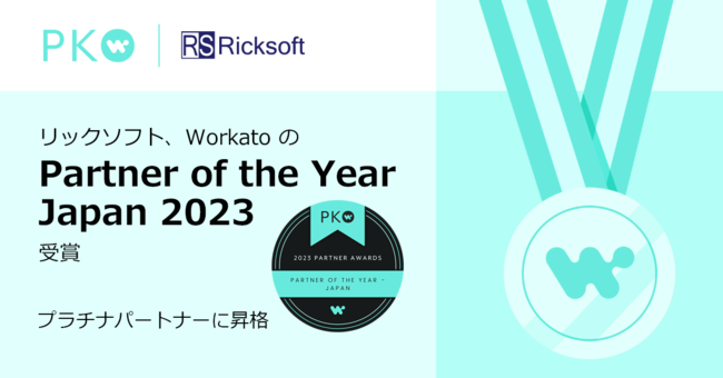 リックソフト株式会社(本社:東京都千代田区、代表取締役:大貫 浩、以下 リックソフト)は、Workato,Inc(ワーカートインク、本社:米カリフォルニア州、CEO & Co-Founder:Vijay Tella、以下 ワーカート社)が2023年3月14日に開催した同社のサービスパートナー(販売代理店)向けのイベントで、「パートナー・オブ・ザ・イヤー・ジャパン(Partner of the year Japan)」を受賞しました。同時に、リックソフトは日本で初のWorkato・Platinum Partner(ワーカート・プラチナパートナー)に認定されました。