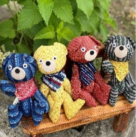 會空は、福島第一原発の事故の影響によって大熊町から会津若松市に避難してきました。暮らしがようやく落ち着いてきた頃、「なにかをしなければ」と思っていたところに出会ったのが伝統工芸品の会津木綿。自分たちでオリジナル商品を作っていこうと決意し立ち上げたのが、「會空」です。会津の「會」と「空」。現在暮らしている会津と大熊町は同じ「空」で繋がっているという思いを込めて、ふるさと大熊町のマスコットの熊をモデルにした可愛らしいキャラクター「あいくー」を作っています。