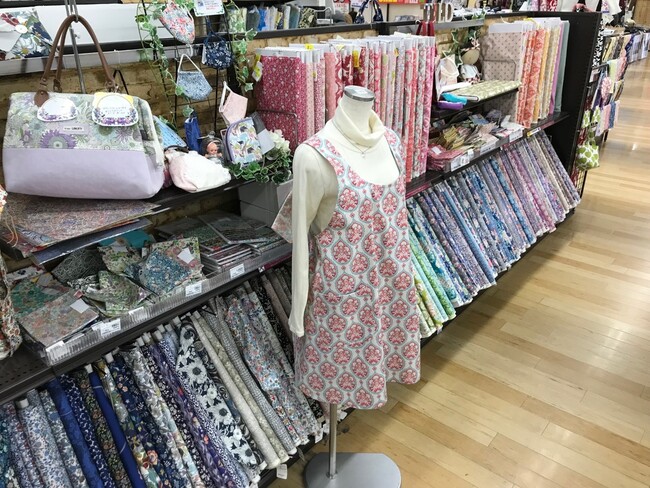 手芸売場では手芸に必要となる糸や針、はさみ、物差し・メジャーといった道具やファスナー、ボタン、生地といった材料を数多く取り揃えております。