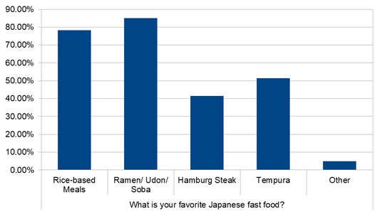 ベトナムZ世代が最も好む日本のファーストフードは麺類(ラーメン・うどん・そば)で85.1%、次いでご飯もの(定食・丼もの・牛丼・カレーライス・カツ丼など)が78.2%と高い支持を集めた。天ぷら(51.5%)、ハンバーグや肉料理(41.6%)も一定の人気がある。