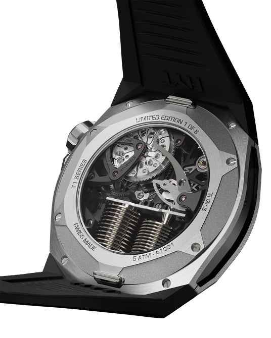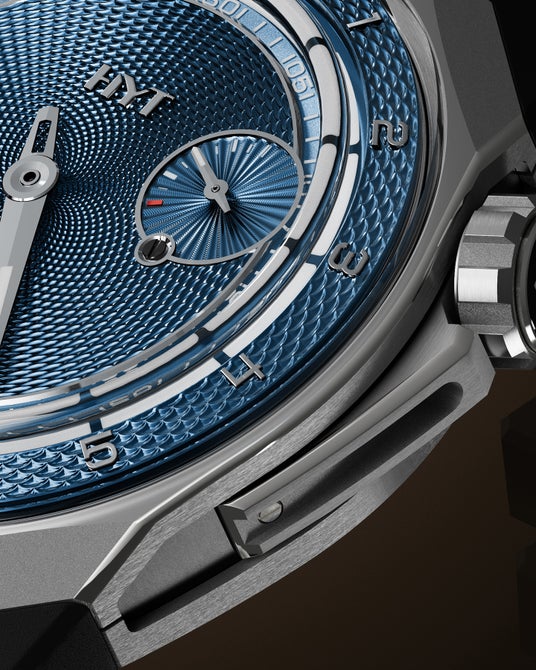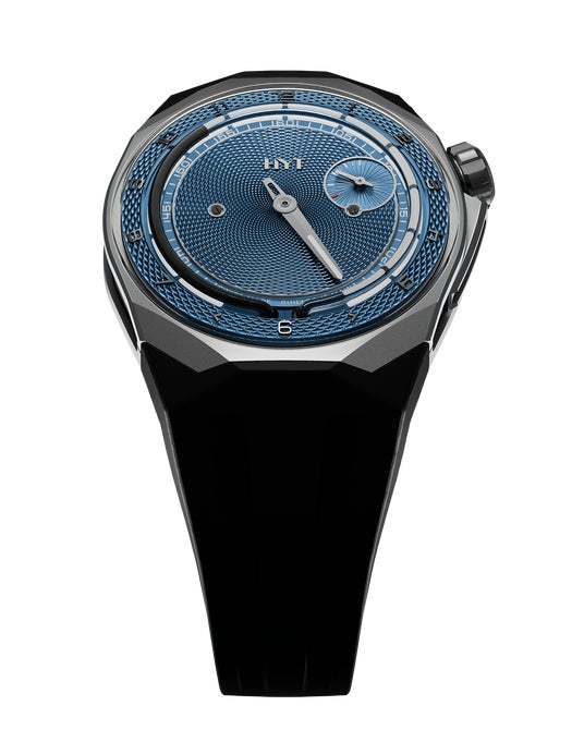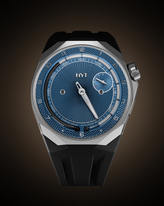 HYTの新作 T1チタン ギョーシェは、ギョーシェ彫りの文字盤と、HYTならではのユニークな流体機械式時計製造技術を組み合わせたタイムピース。世界限定8本です。