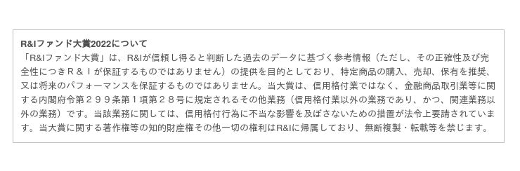 上記は過去の一定期間の実績が評価されたものであり、将来の運用成果を示唆あるいは保証するものではありません。