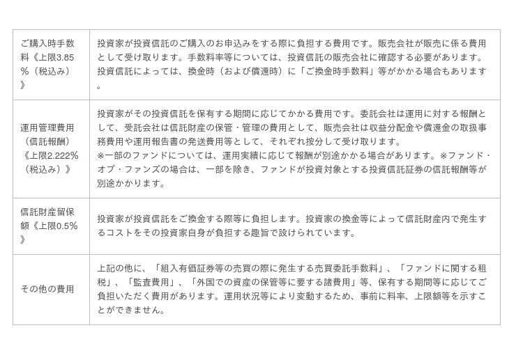 下記に記載しているリスクや費用項目につきましては、一般的な投資信託を想定しております。費用の料率につきましては、野村アセットマネジメントが運用するすべての公募投資信託のうち、投資家の皆様にご負担いただく、それぞれの費用における最高の料率を記載しております。投資信託に係るリスクや費用は、それぞれの投資信託により異なりますので、ご投資をされる際には、事前によく投資信託説明書(交付目論見書)や契約締結前交付書面をご覧下さい。