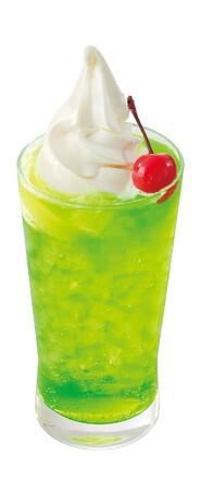 『昭和レトロクリームソーダ』は、懐かしい味わいの色鮮やかなメロンソーダに、真っ赤なチェリーと、サンマルクカフェオリジナルの北海道産ミルクを使用したソフトクリームをトッピングしました。しゅわっと優しく弾けるメロンソーダの味わいは、まさにレトロな喫茶店のソーダそのものです。メロンソーダに濃厚な味わいのソフトクリームを合わせて飲むことで、夏にぴったりな弾けるしゅわっと感と、まろやかなミルク感の両方をご堪能いただけます。