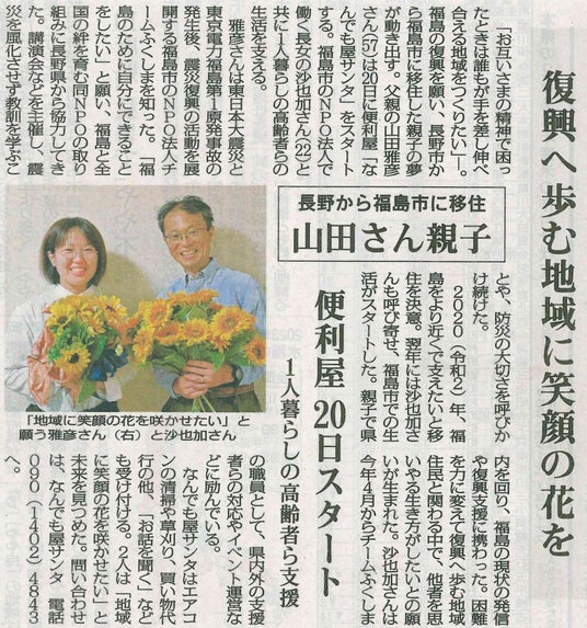 このたび、ひまわり続婚式にて挙式される山田ご夫妻は、長野県より福島に思いを馳せて福島ひまわり里親プロジェクトにご参加してくださり、福島の復興への思いが高まりご家族で移住されました。また、娘さんはNPO法人チームふくしまの職員になりました。
