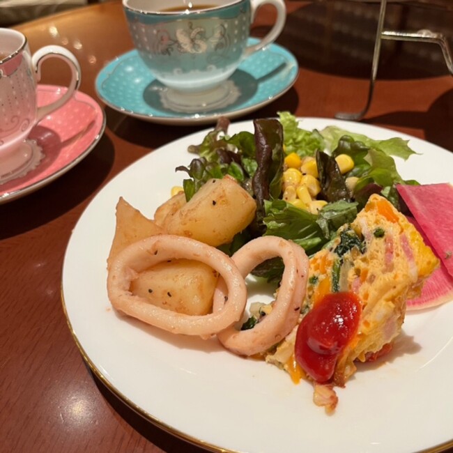 《 彩りサラダ・ほうれん草のフリッタータ・イカとジャガイモのバターソテー》