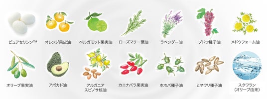 訴求性分/ピュアセリシン(TM)と13種類の植物オイル