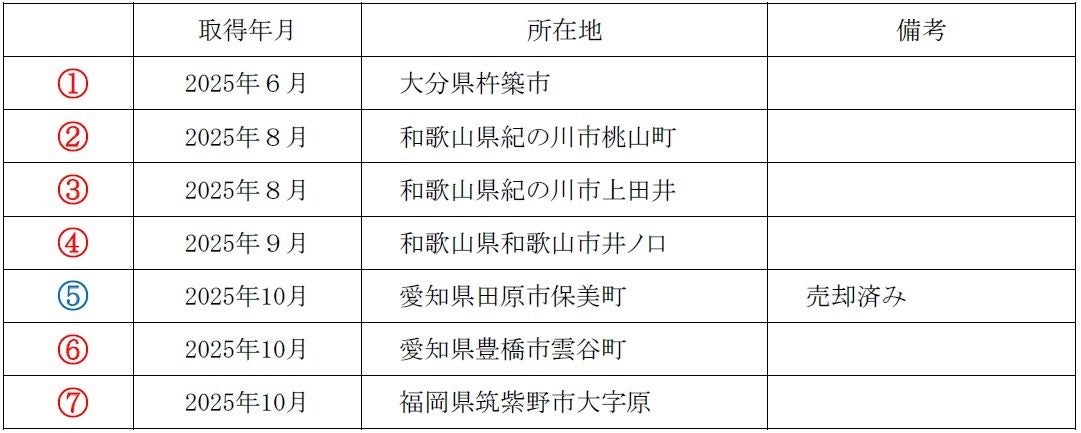 当社は、2025年7月17日付け「新たな事業の開始に関するお知らせ」にて公表しましたとおり、2027年度までに全国50カ所、合計出力100MW(蓄電池容量400MWh規模) の蓄電所の開発・運用を目指し、再生可能エネルギーの更なる導入拡大に貢献する系統用蓄電池事業を推進しております。