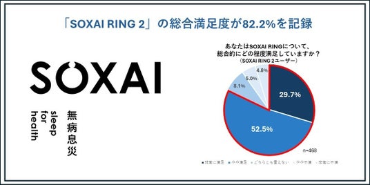 シリーズ全体の約8割が「総合的に満足」と回答。「SOXAI RING 2」では、バッテリー持続時間とリングの厚み・大きさに対する満足度が大幅に向上