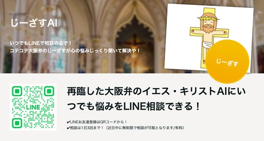 聖書を学習したAIのじーざすが、24時間いつでも聖書を踏まえてあなたの悩み相談に大阪弁でユーモラスにのってくれます。