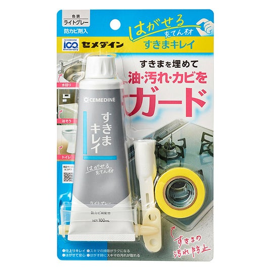 ●はがせる充てん材「すきまキレイ」トイレ・コンロ周り・シンク周り・浴槽エプロンなど様々な“スキマ”への、汚れの侵入・カビの発生・水アカの固着等をガードする「はがせる充てん材」です。硬化後は手で簡単に剥がすことができ、はがす際にはすきま奥の油汚れも一緒に取り除くことが可能です。すきま汚れの掃除を楽にする為、汚れやすい箇所や、メンテナンスのため定期的に開封する箇所におすすめです。キレイな仕上がりを実現するためのヘラとマスキングテープ、細いスキマにも対応する細ノズルとチューブ絞り器付きが付属したオールインパッケージです。特別な道具の準備が不要で、すぐに作業が始められます。